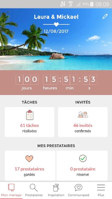 Il y a 3278 joursCoucou tout le monde.Sava bien ? Voilà mon compteur aujourd'hui. Sa avance vite il reste 100 jours. Nous avons finis les préparations avec mes couples pour le mariage à l'église. Nous avons revu le diacre qui va nous mariés, on a calé la cérémonie,...
