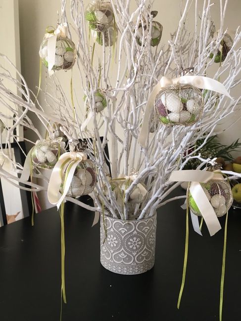 Ma belle mère est juste magique ! Regardez ce qu'elle m'a trouvé (elle a même mis mes contenants à dragées pour qu'on visualise bien !) il reste juste à changer le pot et ce sera parfait !!! Chéri qui n'aimait pas notre pauvre branche en plastique...