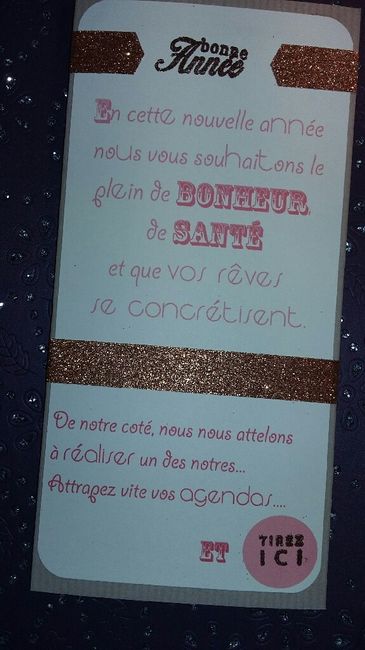 Ça y est nous allons commencer la distribution et envoie de nos save the date qui feront également office de carte de voeux pour la nouvelle année. La carte de voeux forme une pochette et le save the date est à l'intérieur.