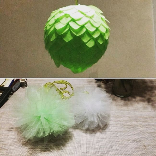 Voici mes 1er essais de pompons J'en ai fait en papier crépon aussi... Horrible, on dirait une salade verte LOL. Du coup, j'utiliserai le crépon pour les toutes petites fleurs. J'aime beaucoup le tulle!!! ça demandera juste du temps et pas mal de...