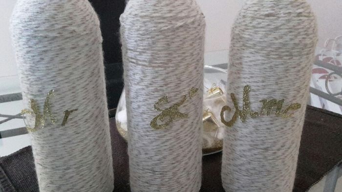 J'ai pris l'idée sur le site quelqu'un en avait fait et je les ai refait dans mon style assez naturel et mes couleurs ( couleur de mon mariage blanc lin et doré)...ce sera pour mon bar à bonbon ...