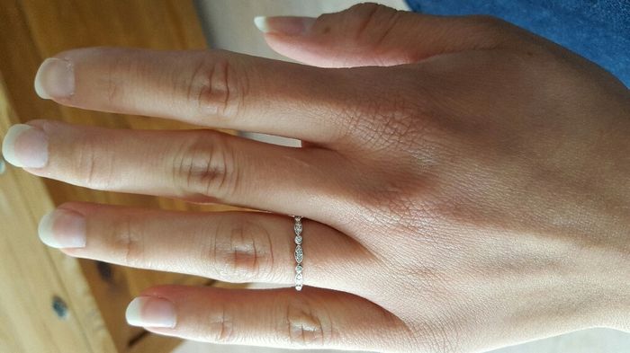 Bonjour tout le monde, Je fais ma curieuse :$ et voulais voir un peu vos bagues de fiançailles Voilà la mienne, je ne m'en lasse pas même après 2 ans et mon alliance sera dans le même style.