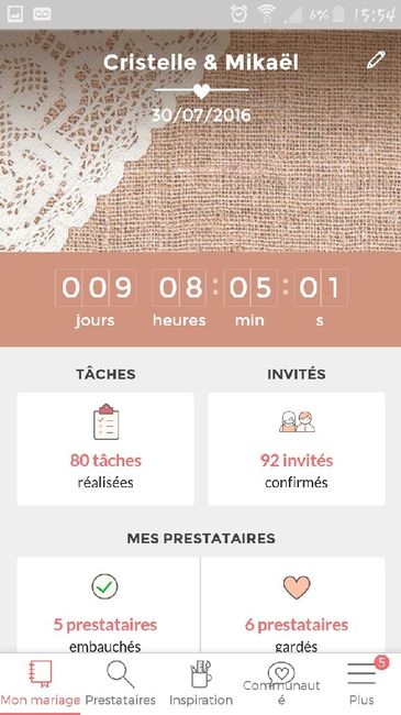 Il y a 3566 joursNous nous marions le 30 juillet et aujourd'hui on peut dire qu'on a été efficace ! Mon esthéticienne ma appeler une place s'est libéré demain à 17h30 je vais quand meme pouvoir faire mon soin du visage épilation sourcil et maillot (j'ai eu une bon...