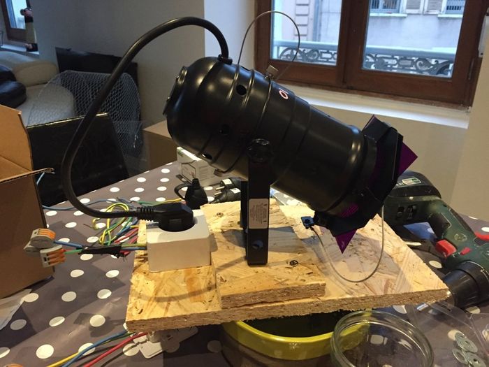 Hello les filles Désolé pour l'absence j'ai un boulot de malade en ce moment Sinon week end super productif fabrication des spots pour la lumière ( on dirait un petit chinois qui travailMon homme ? ) Nettoyage des caisses à pomme pour les blanchir...