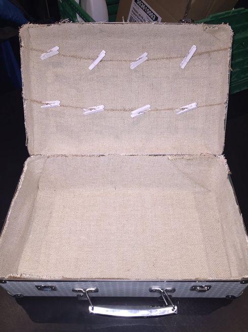 Hello les bridesVoilà notre urne valise sur les petits pince à linge serons installé des photos de nous et du lieu de VN l'Afrique du Sud ^^