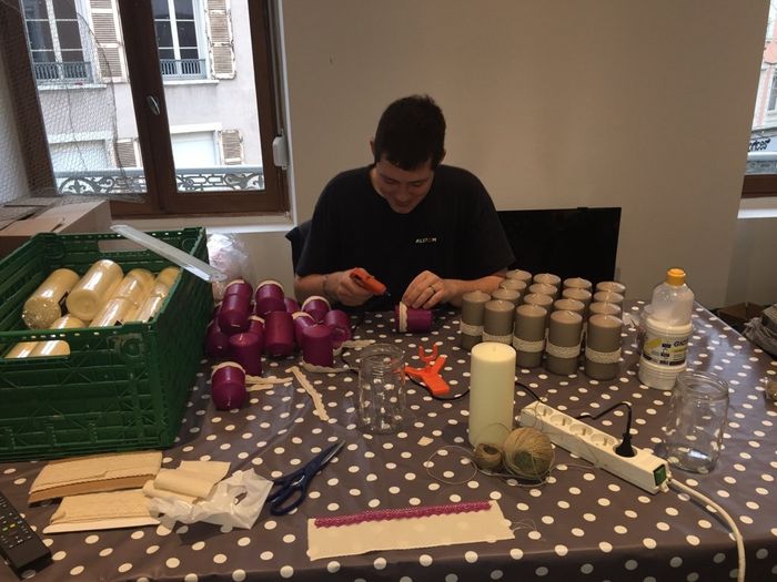 On fait les chinois vu le temps ^^ Bougies qui seront sur les tables sur des rondins de bois Mon homme est a fond ^^