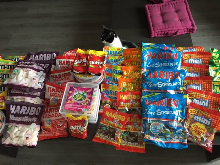 Coucou les filles Voilà mes petits achats du jour Les bonbons du candy bar ^^ j'ai profité de promo a carrefour ^^ Mon chat va être malade ^^