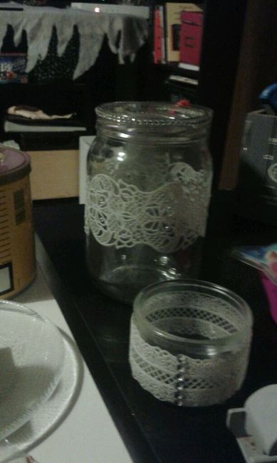 Coucou tout le monde.....alors je ne sais pas vous mais en plus de nous coûter de l argent et de nous prendre beaucoup de temps, le mariage commence à nous envahir! !!lol. Mine de rien entre les petits pots de crème dessert, les conserves en verre,...