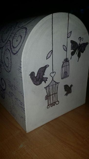 Voilà j'ai pas fini mais bien avancer mon urne qui reste dans le thème de mes faite part. Mon homme adore mais ça manque encore de détails. Mon chéri n'a plus qu'à faire le socle pour la mettre sur pied. Et moi trouver les accessoires pour la finir...