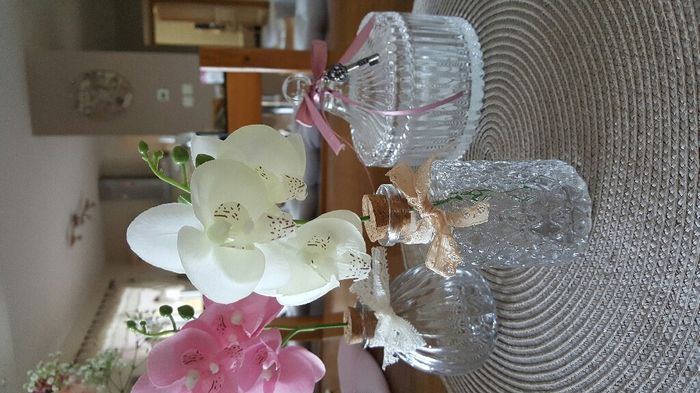 Il y a 3571 joursVoici quelques éléments de ma deco de table que j ai agrémenté de dentelles et de ruban vieux rose et je pense remplacer la fleur synthétique par une vraie. ....imaginer tout cela sur un chemin de table en toile de jute et dentelle .....je suis trop...