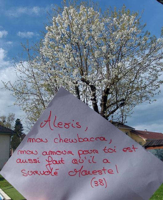 Bonjour à tous, Aujourd'hui je lance un "love note " pour mon mariage. J'ai trouvé l'idée géniale ! Et j'aurais besoin de vous ❤️🙏❤️ Pour cela : Il faut que vous écrivez sur une feuille cette petite phrase : Alexis, mon chewbacca, mon amour pour toi...