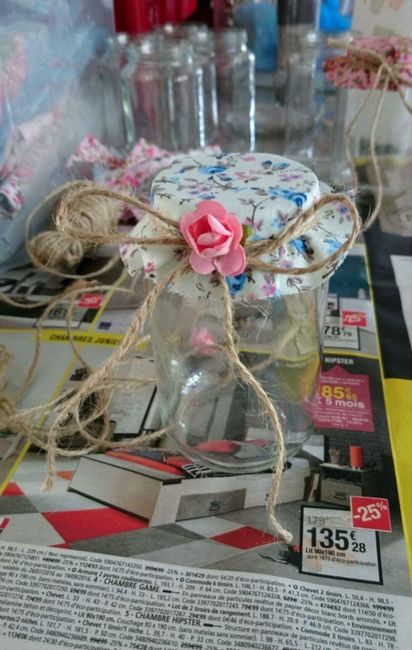 Bonjour les filles, je commence à faire mes pots, il serait temps car mariage dans 2 mois ! 24 bocaux et 36 pots la laitière à faire. Vous en pensez quoi ? Ce sont mes trois premiers. Avez vous des modèles dans le même thème à me montrer? Car je...