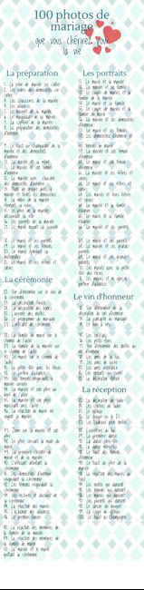 Bonjour tout le monde, Avez-vous transmis à votre photographe une liste des photos obligatoires ? Et si tel est le cas, avec qui avez-vous demandé des photos "obligatoires" ? J'ai en tête les principaux : parents - frères et sœurs - grands-parents......
