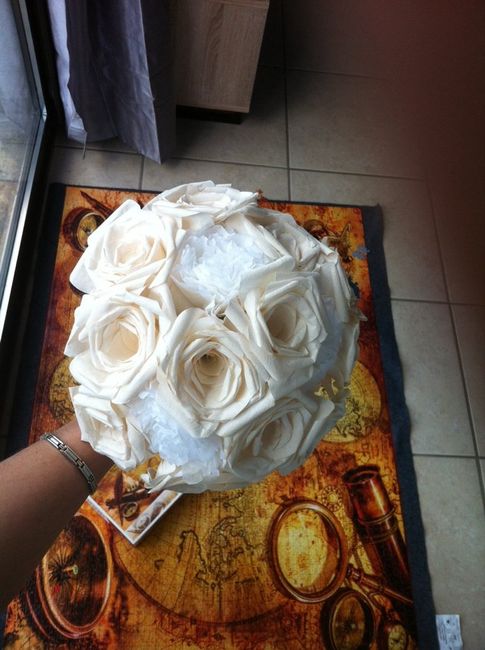 Voilà la 1ère ébauche de mon bouquet, en filtre a café. Il me reste a colorer les pivoines en papier de soie en rose foncé je pense. Et je viens de colorer 12 autres roses, en rose très pale pour voir ce qui ferait le mieux. Vous en pensez quoi ?