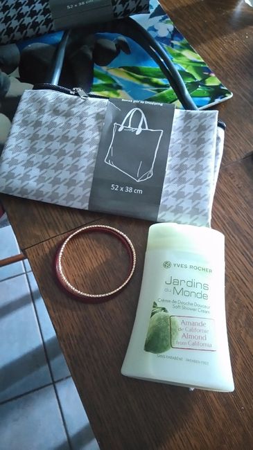 Bonsoir Je partage avec vous quelques petits achats pour le mariage ! des leds dorées, des strass et stickers, du ruban et du sable doré et bordeaux pour le centre de table, puis des pompons que ma belle-mère a fait pour l'exterieur, un gros pot pour...