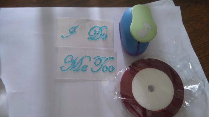Voilà ma 2ème commande reçue ! des stickers pour les chaussures (bleus comme ça ça fait un accessoire bleu dans la tenue), une perforatrice note de musique pour faire les confettis, et un rouleau de ruban bordeaux pour faire de la déco ! 2eme...