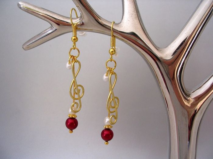 Voici les boucles d'oreilles que je porterai à mon mariage ! comment les trouvez-vous ? elles sont parfaitement dans mon thème (la musique) et dans mes couleurs (or et bordeaux) je voulais des boucles d'oreilles un peu originales, qui changent de ce...