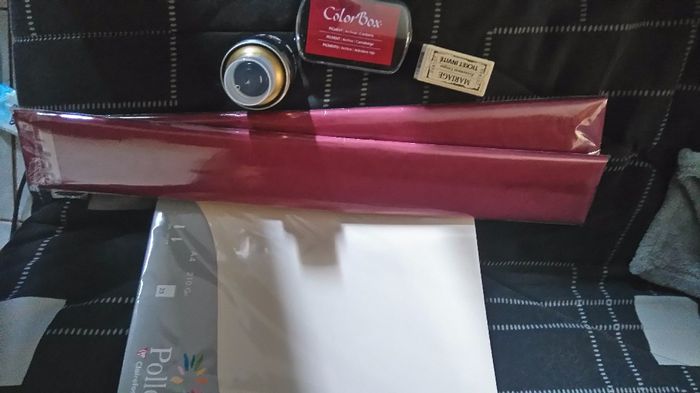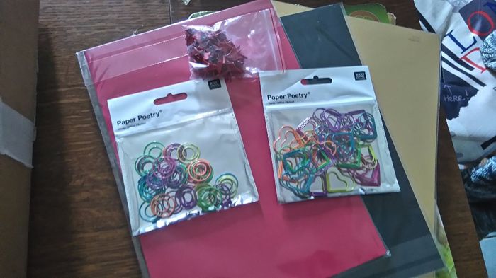 ça ne s'arrête pas en ce moment !! voilà notre derniere commande : du papier doré, bordeaux et noir pour faire le plan de table, des trombones pour accrocher les cartons invitations sur le faire-part et des attaches parisiennes en forme de coeur pour...
