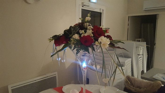 Coucou les filles. Comment aller vousTout d'abord je vous souhaite de joyeuse fête.De mon côté ça fait un an que mon chéri ma fait sa demande déjà que ca passe vite.Mais toujours mon problème. J'ai choisi mon centre de table qui sera vase martini....