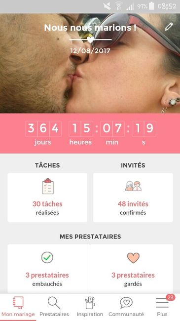 Il y a 3541 joursEt nous voilà à 16h du mariage toujours pas dodo on sort d'une merveilleuse soirée karaoke le temps de rentrer 1h30 du matin debout 6h du matin pour une longue journée