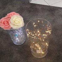 Il y a 3324 joursJE suis vraiment nulle et pas douée Alors jaurais besoin de vos avis pour compléter cette déco Dans le vase ac des roses il faut imaginer un bouquet composer de ces roses+gysophile +feuilles verts style J'ai mis Des perles d'eau puis des leds'Ca se...