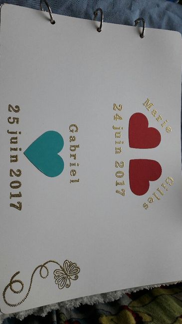 Il y a 3337 joursBonsoir à tous !Une copine est venue m'aider à organiser la décoration de notre week end avec Mariage (couleurs violet et jaune) le samedi et Baptême de notre fils le diamnche ( couleur bleu)D'abord mon livre d'or ( quelques pages à refaire mais...