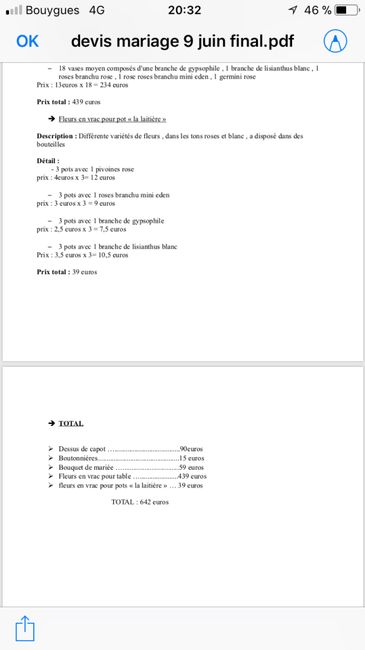 Hello la commu ! Ce week end nous sommes allé faire un devis auprès de notre fleuriste, j’aimerais savoir ce que vous pensez des tarifs. Ce sont eux qui ont fait les compo de la voiture, 100€ pour les 3. 5€ la boutonnière et 50 euros mon bouquet de...