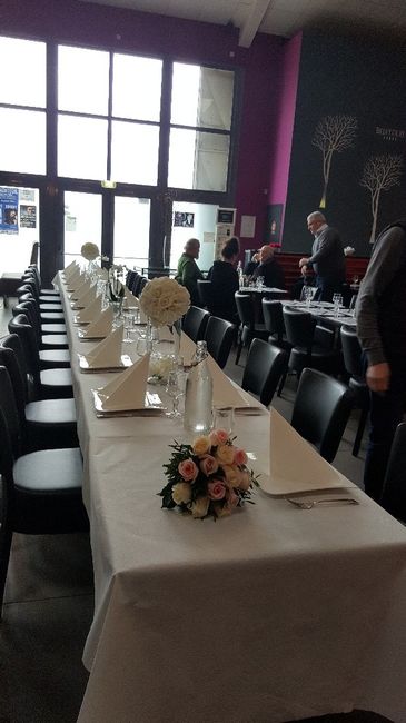 Bonjour les femme je vous mets des fotiq du lieux que nous avont choisir pour le repas avec quelque fotos des table de dessert et.fruis quil font... et la sale on peu choisir la couleurs des nappes blanc Pour blanc gris blanc fushia blanc maron blanc...