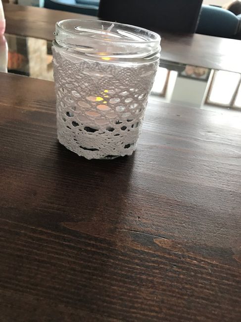Coucou les filles, voilà premier essaie de mes photophores, je pense utiliser un ruban de dentelle un peu moins large histoire de voire l'ardoise au fond du pot. Et vous, vous en pensez quoi?