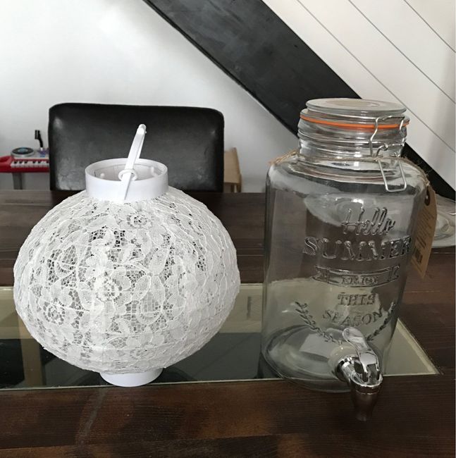 Première visite pour moi dans ce magasin, qui est juste TOPISSIME. J'ai pris 3 jarres de 3 L et 10 lanterne à led en dentelle, qui seront suspendu au dessus des tables