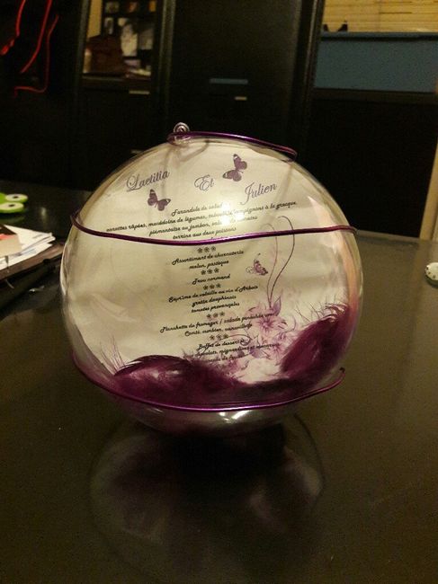 Voici les 1er essaies marque place et menu. Je suis plutôt satisfaite mais j'ai du mal a faire tenir ma boule droite avec le menu. Le fil de fer ne tiens pas super avez vous des idées ?? Autres que la suspendre !!