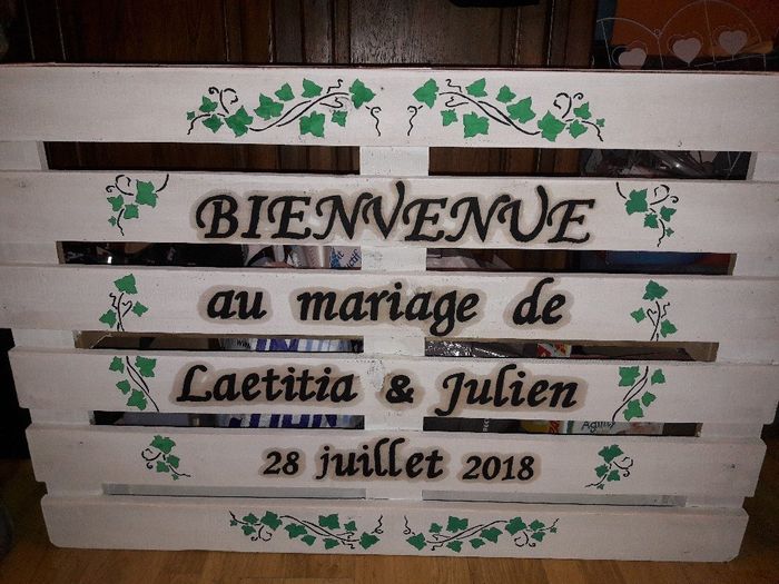 Voila mon panneau de bienvenue terminé. Manque plus que des vrai fleur a mettre dans les coins le jour du mariage. Plutôt contente de mon travail 😃