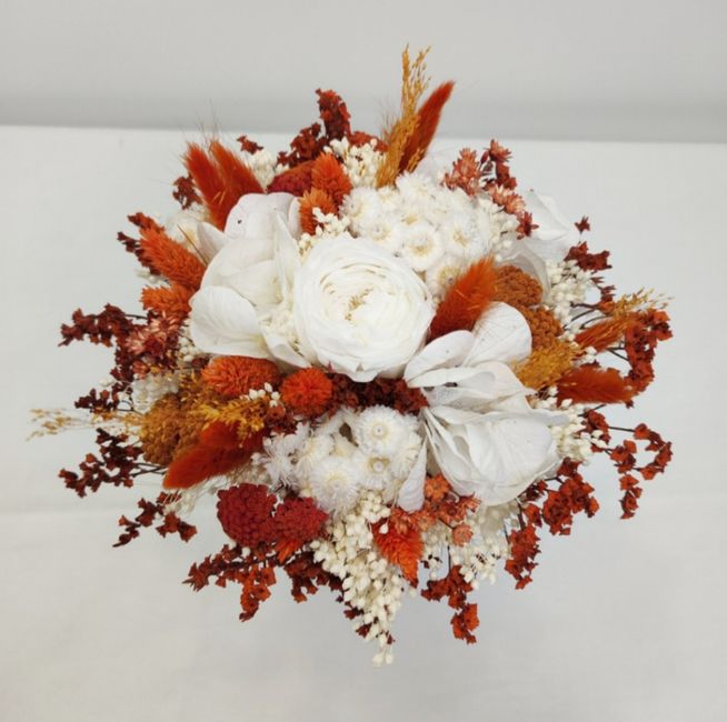 Coucou, Suite à mon poste concernant le choix d'un bouquet en fleurs fraîches ou fleurs sechées j'ai choisi un bouquet en fleurs sechées dans les tons automnale 🍂🍁 bon clairement le prix m'a aussi décidé... je pensais qu'un bouquet de fleurs fraîches...