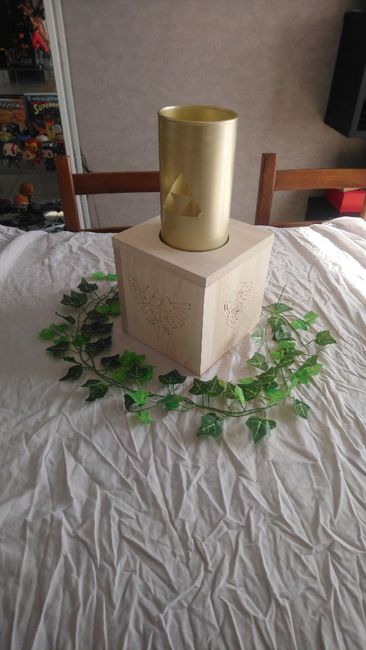 Il y a 2773 joursCoucou tout le monde. Avant tout. Merci à Lucie pour l'idée des lanterne geek. Voici donc 2 de nos centres de table. Le liere sera du vrai et plus volumineux le jour j. J'ai acheté de l'artificiel pour tester uniquement. Et j'avais pas de nappe...