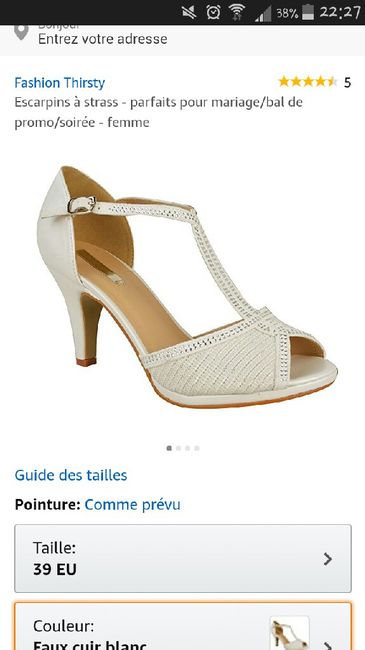 Bonjour a toutes, Voilà un peu j'ai un gros problème. Je doit trouver ma paire de chaussure pour mon mariage le 19 mai 2018. Je doit l'avoir pour le 9 décembre pour l'essayage de ma robe. Je ne trouve pas. . . J'ai fait plusieurs magasin mais y a pas...