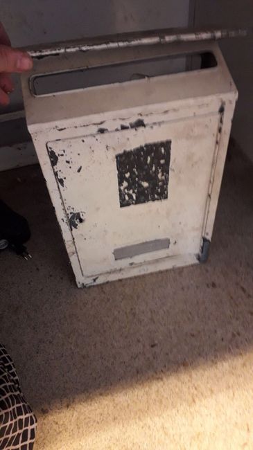 Suis trop contente mon chéri a trouvé notre urne... il ne reste plus qu’ à la refaire.... la customiser... une boîte aux lettres. Vous en pensez quoi? Bon l’an sur la photo elle est pas en très bonne état