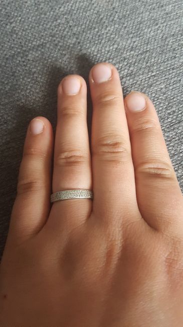 Bonjour à toutes ! J aimerais beaucoup voir vos jolies bagues. Voici la mienne, Mr l'a choisit seul et je suis plus que satisfaite !