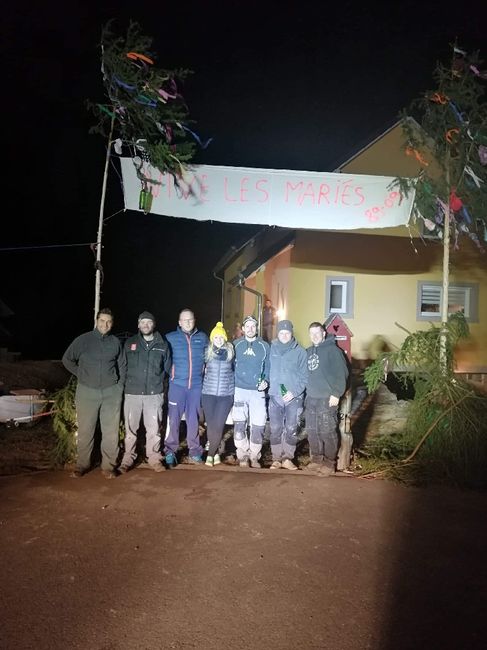 Il y a 2616 joursCoucou la commu ! Vous avez aussi des petites traditions chez vous avant le mariage ? Pour nous la classe 89 de mon conjoint est venue nous poser les tanalas ! Arrivée à 19h 15, le temps d'écorcer, mettre les décors... Et fini en repas tous ensemble...