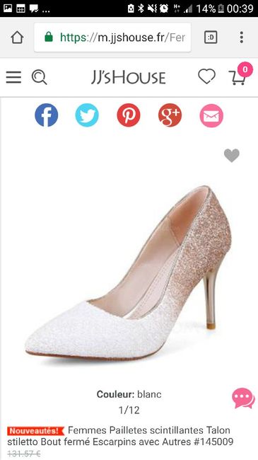 Coucou la communauté ! La paire de chaussures est un des accessoires les plus importants du look de la mariée. Il faut qu'elle soit jolie, confortable et qu'elle aille avec la robe de mariée Avez-vous trouvé vos chaussures ? Montrez-les moi !