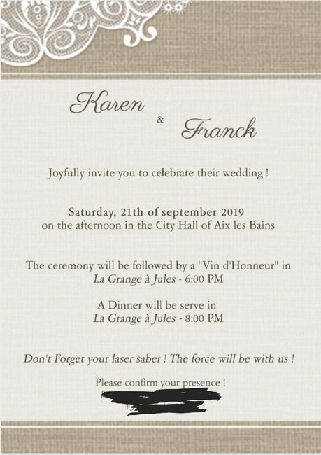 Nous n'avons pas encore l'heure de fixée pour la mairie donc pas possible de faire les "vrais" faire-part, mais ayant un couple d'ami australien, il nous fallait leur envoyer le faire part très en avance ! J'ai donc opté pour le 2 en 1 : demander un...