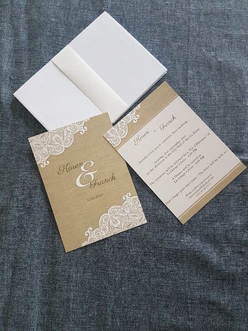 Coucou les filles ! Pas eu le temps de trop poster ces derniers jours, désolée ! Nos faire parts en anglais (qui faisaient aussi office d'échantillons) sont arrivés vendredi ! Plutôt contente du résultat pour le prix (moins de 1€). Ils prendront le...