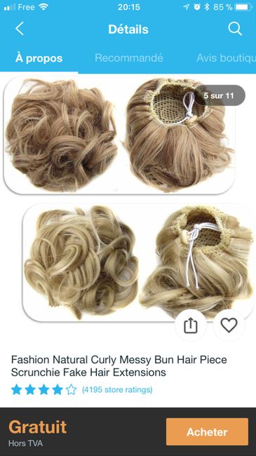 Bonjour à toutes. Voilà je cherche comme sur la photo un rajout de cheveux pour faire un chignon. J’avais trouvé ça sur Wish mais malheureusement je ne suis toujours pas livré j’ai peur de recommander trop tard et que mon coiffeur ne puisse pas...