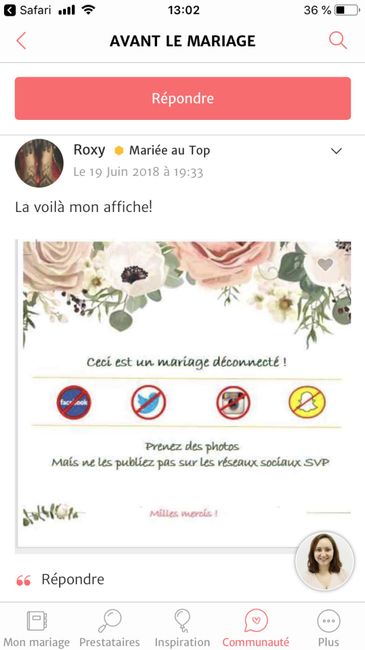 Hello la commu' Vous allez peut être pouvoir m'aider, une future mariée avait fait un mot pour éviter que les gens prennent des photos avec leur portable, afin de pas avoir pleins de téléphones sur les photos du photographe. Je pensais que c'était...