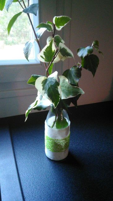 Après vous avoir demandé conseil pour savoir quoi mettre dans mes pots pour reduire le budget fleurs j'avais validé du naturel, dans le petit pot une bougie avec soit du sable soit des copeaux de bois au fond, dans le pot moyen des fleurs et dans le...