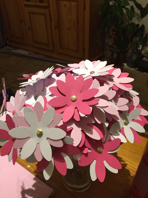 Bonjour, Je souhaite faire des bouquets de marguerites en papier pour mettre sur les tables. Je souhaite parvenir au visuel de la photo. je ne sais pas où trouver les petits bijoux à coller comme sur la photo pour faire les coeurs de fleurs. je...
