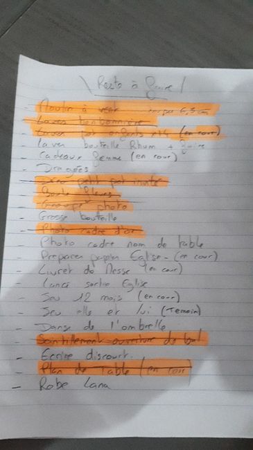 Coucou à 2 mois du mariage voilà ce qui me reste à faire, vous en penser quoi ? Moi j'ai l'impression d'être déborder !