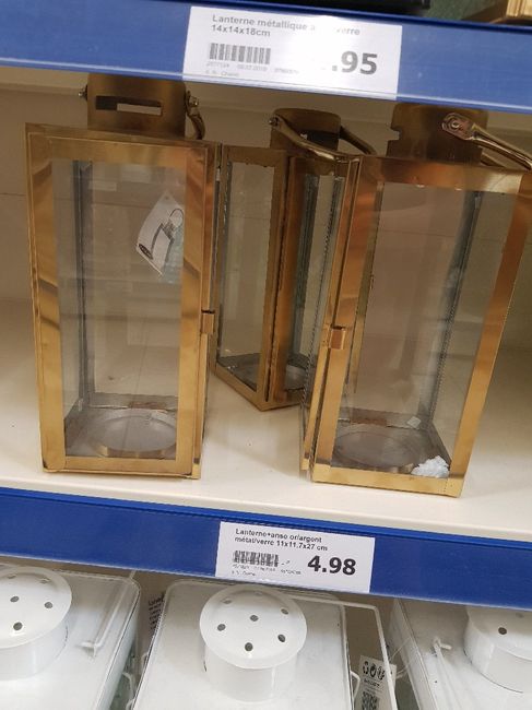 Il y a 2442 joursCoucou a tous ! Je m'active pour la déco. Aujourd'hui j'ai trouvé (chez action) les lanternes comme je le souhaite 😍. Mais la problème plus que 3 en rayons (il m'en fallait 8 😥). Le code barre est rayé ce qui signifie qu'il n'en recevront...