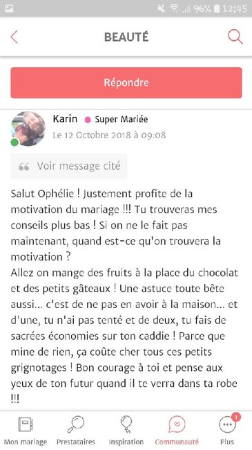 4 semaines de rééquilibrage alimentaire et un peu de sport ! = - 3 kg !!! Il en reste encore 22 Bon c'est un message qui ne sert à rien mais j'avais envie de partager ça avec vous !