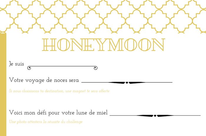 Coucou, Voilà j en avais entendu parler des FM qui recherchaient un moyen de faire participer ses invités au voyage de noce. Je viens de lire ça dans un magasine de mariage si jamais ça peut servir.