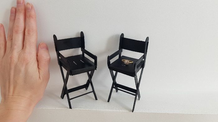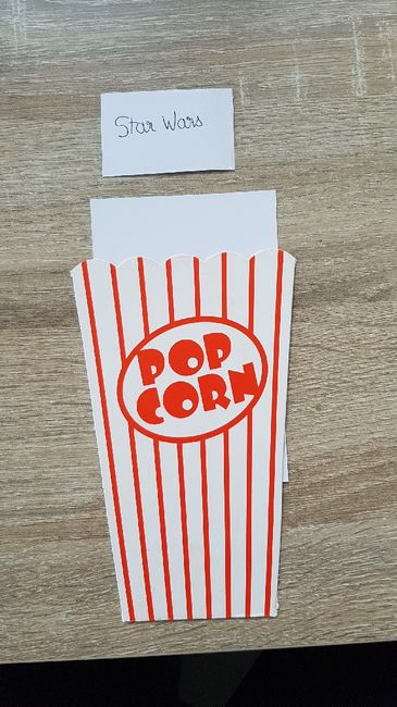 Voila mes portes alliances, je les ai fabriqué car je ne trouvais pas de cette taille la à vendre. Notre thème est le cinéma. Je n'aime pas les coussins donc je voulais quelque chose de plus original. Je vais juste inscrire sur les fauteuils soit...